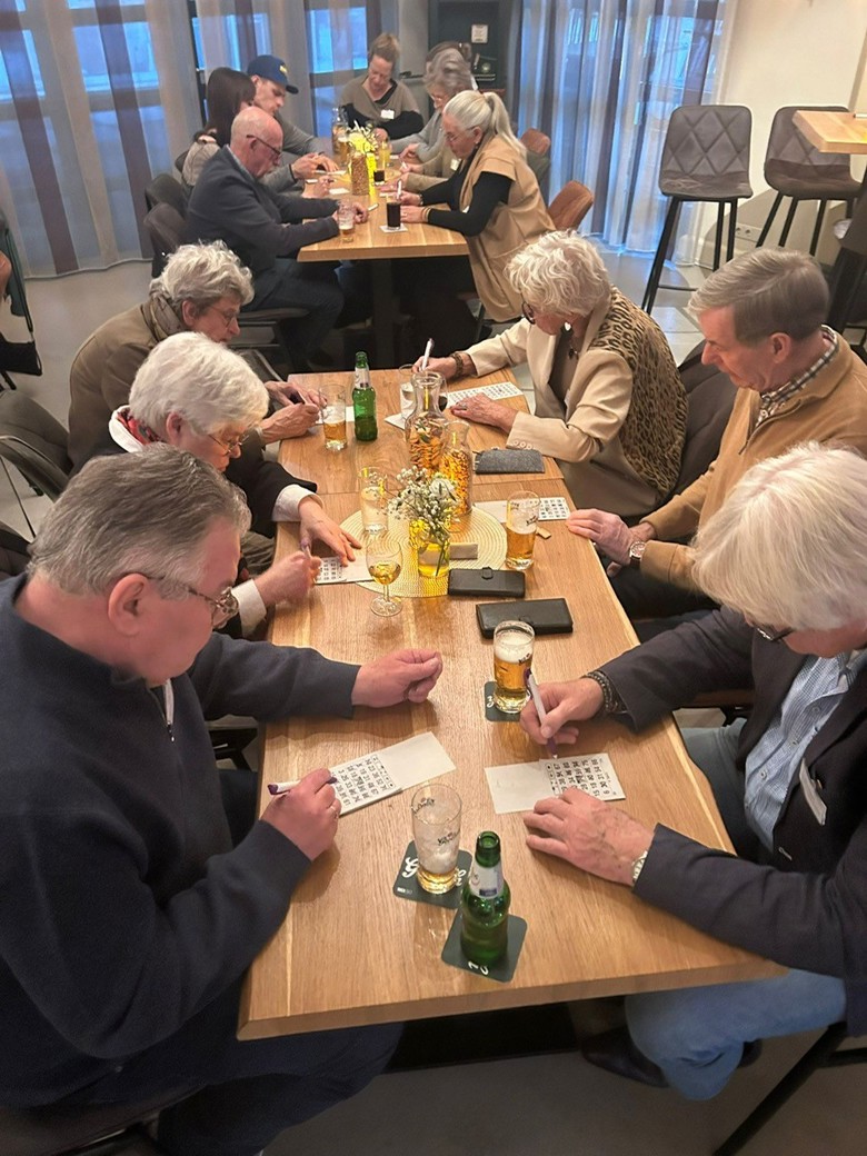 Deze keer waren we bij Bistro Kampkuiper. Tijdens de Bingo werd hard gestreden om de mooie prijzen. Daarna kon iedereen genieten van een heerlijk buffet en lekkere toetjes. Na afloop kreeg iedereen een borrelplank met de skyline van Almelo erop.
