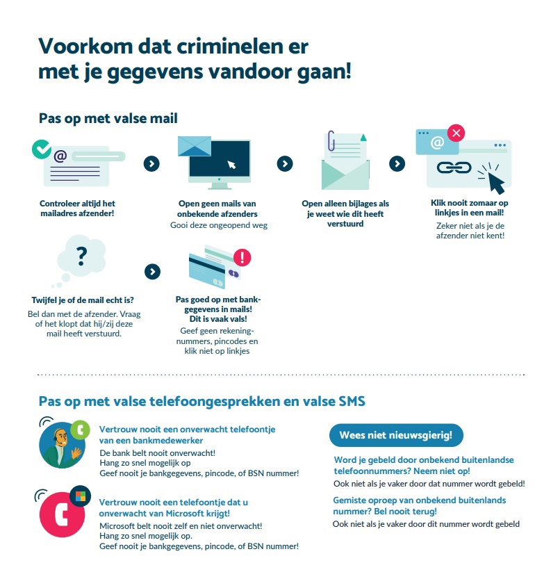 Wij hebben onze medewerkers geïnformeerd extra alert te zijn de komende tijd op vreemde mails en telefoontjes. Wij vragen u om dat ook te zijn. In deze infographic ziet u waar u op kunt letten en wat u kunt doen om een digitale aanval te voorkomen.