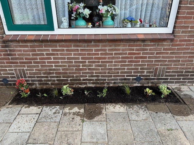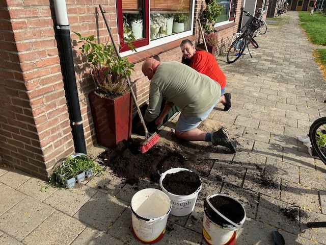Zaterdag 7 oktober hebben wij, samen met bewoners, Avedan, gemeente Almelo en de Groene Loper Natuurhus Almelo, geveltuintjes aangelegd in de wijk Wester-Sluitersveldlanden. Maar liefst 35 bewoners in de Kortenaerstraat, de Ruyterstraat en de Piet Heinstraat deden mee. De aftrap was om 11.00 uur bij het Bridgeclubgebouw aan de Piet Heinstraat. De bewoners werden ontvangen met koffie, thee en een lekker taartje.